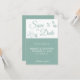 Elegante y romántica tarjeta Save The Date con un bonito y delicado diseño de líneas de orquídeas verdes de menta en la parte superior, sobre un elegante fondo blanco. La parte inferior se puede personalizar fácilmente editando los campos de la plantilla con sus nombres, fecha y ubicación en un tipo de letra blanco y simple sobre un fondo verde sencillo. Para mayor personalización o pedidos de personalizados, no dudes en contactarme en acherryonthecake@hotmail.com (por favor, espere entre 1 y 2 días hábiles). Esta tarjeta Save the Date forma parte de la colección "Delicate Orchids - Mint Green boda suite" con muchos elementos de coordinación para crear una suite boda única.