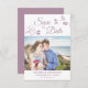 Elegante y romántica tarjeta de foto Save The Date, con una hermosa y delicada línea de flores de orquídeas violetas en la parte superior, sobre un fondo blanco. Fácilmente personalizable añadiendo una de sus imágenes horizontales de compromiso favoritas, y editando los campos de plantilla de la banda inferior con sus nombres, fecha y ubicación en un tipo de letra malva y simple. Para mayor personalización o pedidos de personalizados, no dudes en contactarme en acherryonthecake@hotmail.com (por favor, espere entre 1 y 2 días hábiles). Esta tarjeta Save the Date forma parte de la colección "Delicate Orchids - Dusty Purple boda suite" con muchos elementos de coordinación para crear una suite boda única.