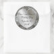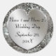Cambia fácilmente a tu propio texto sobre estos elegantes, personalizados, únicos pegatinas y sellos plateados con un aspecto 3d en el fondo impreso de la secuencia plateada. Se muestra "Nombre 1 y Nombre 2 del Día de la Boda" con la fecha en un guión elegante. Cambie a sus nombres personalizados, ocasión especial y fecha fácilmente. También es agradable para fiestas, ocasiones especiales y grandes eventos como un 25 aniversario de plata.
