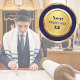 Elegantes Pegatinas hebreos del Bar Azul y Oro Mitzvah