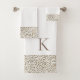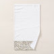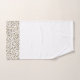En este elegante juego de toallas de baño hay un fondo blanco que contrasta con las pequeñas plumas de oro purpurinoso que hay en el borde. Elegante minimalista moderno. Se puede personalizar con una carta en la toalla grande.