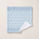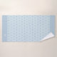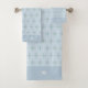 Los puntos de color modernos y elegantes forman cruces sobre el magnífico conjunto de toallas monogramado de fondo azul. Toallas elegantes de decoración casera.