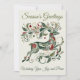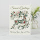 Envía tus más cálidos deseos navideños con esta tarjeta de Navidad única de inspiración vintage. Con un diseño de reno bellamente intrincado en tonos de verde menta, rojo y dorado, esta tarjeta captura una estética retro atemporal. El elegante mensaje de "Saludos de la Temporada" en la parte superior, junto con "Deseándote Alegría y Paz" en la parte inferior, ofrece un saludo sincero. Personaliza la parte delantera y trasera con el nombre de tu familia y un mensaje navideño reflexivo. Ideal para cualquiera que ame una mezcla de estilos clásicos y modernos, esta tarjeta única dibujada a mano es perfecta para difundir alegría durante la temporada festiva.
