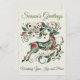 Envía tus más cálidos deseos navideños con esta tarjeta de Navidad única de inspiración vintage. Con un diseño de reno bellamente intrincado en tonos de verde menta, rojo y dorado, esta tarjeta captura una estética retro atemporal. El elegante mensaje de 'Saludos de la temporada' en la parte superior, junto con 'Deseándole alegría y paz' en la parte inferior, ofrece un saludo sincero. Personaliza la parte delantera y trasera con el nombre de tu familia y un mensaje navideño reflexivo. Ideal para cualquiera que ame una mezcla de estilos clásicos y modernos, esta tarjeta única dibujada a mano es perfecta para difundir alegría durante la temporada festiva.