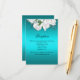Una magnífica tarjeta de recepción de bodas acuáticas de lujo que contiene todos los detalles que necesitas para que tus bodas sepan de tu recepción. Los detalles se pueden personalizar fácilmente para adaptarlos a su propia información. El diseño cuenta con un bonito ramo de novia blanco en la parte superior de la tarjeta, con una versión más pequeña en la parte posterior. Si lo desea, agregue los detalles de su sitio web boda.