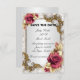 Rosas rojas bonitos y marco de patrón de hoja dorada. Esta hermosa tarjeta de salven la fecha es una forma elegante de anunciar tu gran día. Personalice la tarjeta cambiando el texto en los campos proporcionados. Puede cambiar el estilo de fuente, el tamaño y el color.