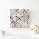 Este reloj de pared floral es perfecto para su hogar o oficina. Cuenta con hermosas rosas y lavanda en un fondo de madera imitada. ¡Es el regalo perfecto!