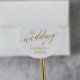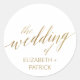 Estos elegantes sellos para sobres bodas de caligrafía dorada son perfectos para un simple boda. El diseño neutro cuenta con un pegatina minimalista decorado con una tipografía romántica y caprichosa de imitación de Relieve metalizado dorado. Personalice la etiqueta con los nombres de la novia y del novio. Nota: Este diseño no tiene Relieve metalizado oro real. Es un gráfico de alta calidad hecho para parecer un Relieve metalizado dorado.
