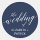 Estos elegantes sellos para sobres bodas de caligrafía marina son perfectos para una boda en otoño. El diseño es sencillo, con una tipografía romántica y caprichosa sobre un fondo azul marino. Personalice la etiqueta con los nombres de la novia y del novio.