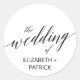 Estos elegantes sellos para sobres bodas de caligrafía negra son perfectos para un simple boda. El diseño neutro cuenta con un pegatina minimalista decorado con una tipografía romántica y caprichosa. Personalice la etiqueta con los nombres de la novia y del novio.