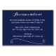 Guíe a sus huéspedes con facilidad utilizando nuestras elegantes tarjetas de alojamiento azul marino. Diseñadas con una sofisticación intemporal, estas tarjetas proporcionan detalles de hotel de una manera elegante y refinada. El rico matiz marino y la disposición clásica garantizan una perfecta coincidencia con su suite de papelería boda.
