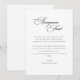 Las Tarjetas Elegant Honeymoon Fund cuentan con un diseño elegante y minimalista, perfecto para parejas que buscan añadir un toque de clase a su lista de deseos de luna de miel. Con tonos blancos y negros, esta carta desprende un encanto atemporal y elegante, a la vez que se mantiene moderna y sofisticada. Ideal para una ducha de novias o un boda, anima a los clientes a contribuir con el fondo de luna de miel de la pareja. El diseño mantiene las cosas limpias y clásicas, con un sutil llamado a la generosidad, lo que lo convierte en una bella adición a cualquier celebración. Si desea ayuda para personalizar esta tarjeta o añadir algún toque personal, no dude en preguntar.