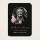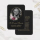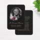 Hermosas tarjetas de memoria florales y negras, burdeos y doradas personalizadas/tarjetas de plegarias funerarias con un marco de foto de oro adornadas con flores rojas y rosas borgoñas todo sobre un fondo oscuro de carbón vegetal. Elementos coincidentes disponibles. Para solicitudes de personalizados, por favor envíenos un mensaje a través del chat de Zazzle.
