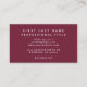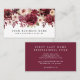 Estas elegantes y modernas tarjetas de visita son excelentes para una florista, esteticista, planificadora de bodas y otras. Las flores de Borgoña enmarcan este sencillo diseño clásico.