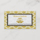 Elegantes tarjetas de negocios de moda adamascada amarillas. Dejar una primera impresión muy favorable con estas tarjetas de visita elegantes. Tu nombre está escrito en un rectángulo blanco con un marco negro. El bonito fondo de damasco amarillo y blanco le aporta un toque de elegancia. Hay motivos amarillos en el centro de la tarjeta. Personalízalo con tu texto. Un diseño sofisticado que también puede ser utilizado por diseñadores de moda, diseñadores de interiores, estilistas, salones de belleza, terapeutas, organizadores de eventos, propietarios de tiendas y más.