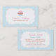 Esta tarjeta de visita viene en una combinación de colores azul pastel y rosa. Esta elegante y elegante tarjeta de visita es perfecta para una pastelería de bizcocho con un delicioso frosting y un marco de vieiras con puntos rosas.