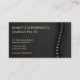 Esta tarjeta de personalizable quiropráctico cuenta con una columna lateral negra y dorada, sobre un fondo negro.