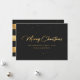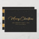 Elegantes tarjetas personalizados de Relieve metalizado negro y oro Feliz Navidad con confeti dorado en la parte delantera y rayas negras y doradas con confeti dorado en la parte posterior de la tarjeta. El efecto Relieve metalizado dorado sólo se simula en las obras de arte.