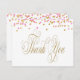 Pink and gold gracias a las cartas con confeti rosa y dorado y elegante oro Gracias guión. Usted puede fácilmente personalizar estas tarjetas de agradecimiento color rosa y dorado añadiendo su mensaje en el estilo de letra y la redacción de su elección. También puede cambiar el color de fondo para personalizarlo. Se trata de un diseño impreso sin purpurina real, confetti, etc.