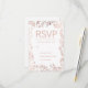 Elegantes tarjetas RSVP con flores de oro de rosa