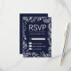 Elegante, moderno y de moda blanco y a la moda azul marino con estampado de mano floral, tarjetas RSVP. Este diseño clásico y sofisticado es perfecto para cualquier evento elegante y de moda, incluyendo bodas y ocasiones diarias.Personalice con su propio mensaje en la parte delantera y un monograma personalizado en la parte posterior. Todo el diseño de impresión fotográfica.