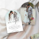 Elegimos 2 tarjetas de forma de arco Boda de guiones fotográficos Una tipografía de conjunto informal en negro para el encabezado principal de los electos complementando el resto del texto que se puede personalizar fácilmente. Reemplace las fotos de muestra de cada lado por sus propios favoritos.
