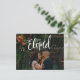 ¡Felicitaciones por ser engañados! Sorprenda a su familia y amigos con esta invitación de elopement que incluye una palabra "eloped" escrita a mano digitalmente y la posibilidad de personalizar sus nombres y mensajes. Añade un sello, envíalo por correo y celebra cuando estés de vuelta en la ciudad.