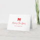 Esta elegante y moda tarjeta de vacaciones doblada en rojo y blanco dice "Feliz Navidad" en un guión caprichoso. En la parte delantera hay una coqueta de diseño. Puede cambiar el arco y el texto a cualquier color.