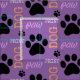 La pata negra imprime sobre fondo morado con tela de texto. Puede elegir su propio color de fondo, color de texto