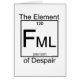 La ciencia ha aislado un nuevo producto químico en la tabla periódica -el elemento de la desesperación, abreviado como FML. Esta sustancia extremadamente volátil causa días de mal cabello, peleas, ironía, sentimientos de impotencia y exclamaciones exasperadas de "¡Maldita sea mi vida!" Química argot para las masas - un regalo perfecto para un mal día!