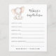 Haga que sus huéspedes llenen estos adorables deseos de tarjetas para bebés en su ducha de bebé. Cuenta con un ilustracion de elefante acuático. Personaliza el con el nombre y la fecha de ducha de la futura mamá.