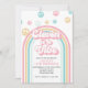 Eleven es una invitación de cumpleaños número 11 inspirada en el arcoíris retro con fuentes y colores al estilo de los 70.
