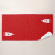 El elfo de la Navidad sostiene un corazón de fondo rojo. ¡Ideal para la temporada de Navidades! Texto sólo sobre una toalla grande.
