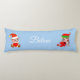 Cute elfo y hada sobre almohada azul claro. Cree que el texto puede ser personalizado.