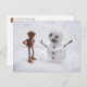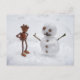 Elf de Acorn haciendo un muñeco de nieve - graciosa postal de posttravesía de invierno