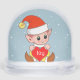 Cute bebé elfo vestido de rojo y texto Globe de nieve. El texto se puede personalizar. Ideal para navidades, cumpleaños, fiesta, favor de la ducha para bebés y más.