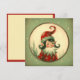 Esta tarjeta de vacaciones presenta un pequeño elfo festivo retro boho en un borde circular navideño. La tarjeta de Navidad es una ilustración pintada en verde, crema y rojo y es muy adorable. Este elfo festivo lleva un sombrero rojo y verde y un traje pequeño rojo y verde. ¡Lindo! Esta tarjeta adorable es perfecta para usar como tarjeta de Navidad, una invitación o para dar con un regalo.