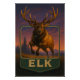 This Elk Poster featuring an elk mid leap as if jumping through the sign, is a great way to add a touch of personalization to your room, office, or any space. A great gift for any hunter, wildlife enthusiast, or anyone who loves nature inspired designs. Part of a growing series featuring wildlife and game fish, collect them to build your own personal wildlife gallery.