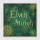 Golden elven script glows against a deep green backdrop, surrounded by mystical symbols and geometric sigils.
