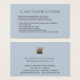 Ayude a su cliente a saber cómo cuidar el artículo hecho a mano. Esta tarjeta de cuidado azul editable puede incluir instrucciones de lavado, así como su consejo de conservación cuando no esté en uso. Utilice el texto de ejemplo como guía y desarrolle sus instrucciones de atención personal. En la parte delantera está la lista de recomendaciones. Al revés, agregarás tu logo, una simple palabra de agradecimiento y luego tus detalles de negocios y contacto. Si necesita ayuda, póngase en contacto con el diseñador que puede ayudarle. Sobre un fondo azul polvoriento claro.
