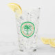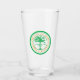 Copa de Vidrio con emblema de la ciudad de Miami, Florida; bandera con tres bandas horizontales de naranja, blanco y verde con emblema con un ilustracion de una palmera en el centro