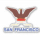 Pegatina de vinilo con escudo de armas de la ciudad de San Francisco, California; bandera blanca con borde amarillo con un ilustracion de un fénix saliendo de las llamas