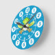 Embroma el reloj de pared gráfico. Este reloj lindo colorido de los niños de la diversión incluye minutos y horas para ayudar a hacer el juego de niño de decir el tiempo. Modifique para requisitos particulares con el nombre corto de su opción, lee actualmente a Alex. Diseñado y pintado exclusivamente por Sarah Trett. Una gran adición a un dormitorio del niño del amante de la rana o del anfibio que está aprendiendo leer una cara de reloj.