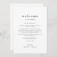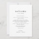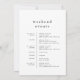 Este sencillo itinerario boda de fin de semana de la colección Emelia es perfecto para un boda minimalista. El diseño en blanco y negro presenta una moderna tipografía bruta sin adornos con un estilo minimalista único. En la parte delantera de la nota de la bolsa de bienvenida se incluye una carta de bienvenida boda y en la parte trasera está la cronología del itinerario boda. Estas notas son perfectas para bodas de destino y bolsos de bienvenida para huéspedes del hotel.