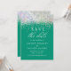 La Purpurina de lujo Emerald Green Wedding Save The Date Cards presenta un fondo verde esmeralda acentuado con un purpurina irrisorio y su personalizado guarda la información de fecha. Personalice el texto editando el texto en los cuadros de texto proporcionados. Diseñado por ©Evco Studio www.zazzle.com/store/evcostudio