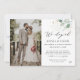 Elegimos la invitación para sorprender a amigos y familiares con la noticia de tu matrimonio e informarles de los detalles de tu recepción que vendrán. La invitación casada aparece "nos fugamos" en un guión divertido y una rama verde del eucalipto con elementos dorados. Personalizar con tu foto.