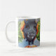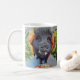 ¡Gran cerdo Emmett del mascota en una taza! Usted puede poner el café en él, usted puede poner té en él. Es una taza con un cerdo negro que lleva un chaleco anaranjado descarado.
