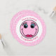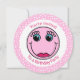 La invitación a la fiesta de cumpleaños del chica Cute incluye una cara de emoji rosa, con ojos azules, pestañas largas y labios rosas, rodeados por un borde de puntos de polka rosa y blanco. El texto principal dice "Estás invitado a una fiesta de cumpleaños". Back of card tiene detalles de fiesta para personalizar.