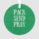 "Paquete. Enviar. Reza". Este adorno le recuerda a los espectadores empacar, enviar y rezar por regalos de caja de zapatos para la Operación Navidades Niño*. Un gran regalo para los líderes del proyecto y los voluntarios. *Este producto no está respaldado ni afiliado a la Operación Navidades Niños o la cartera de Samaritan, pero fue creado en apoyo al trabajo que hacen sus voluntarios para hacer posible su misión.