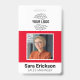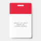 Tarjeta de identificación moderna placa de empleado de negocios roja, logotipo en blanco.
